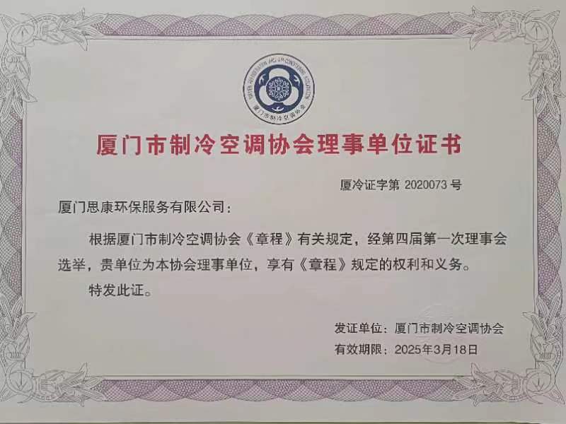 廈門市制冷協(xié)會(huì)理事證書
