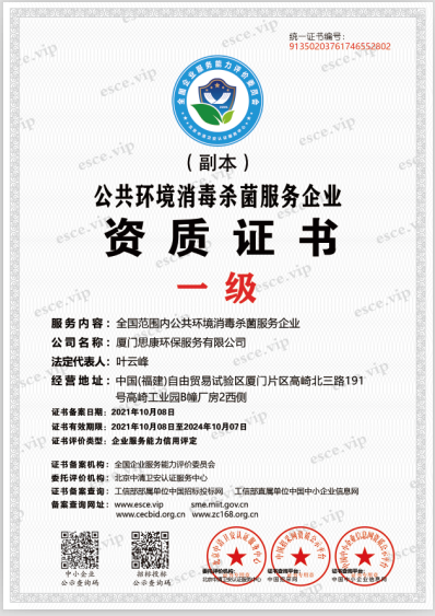 公共環(huán)境消毒殺菌服務(wù)企業(yè)資質(zhì)證書