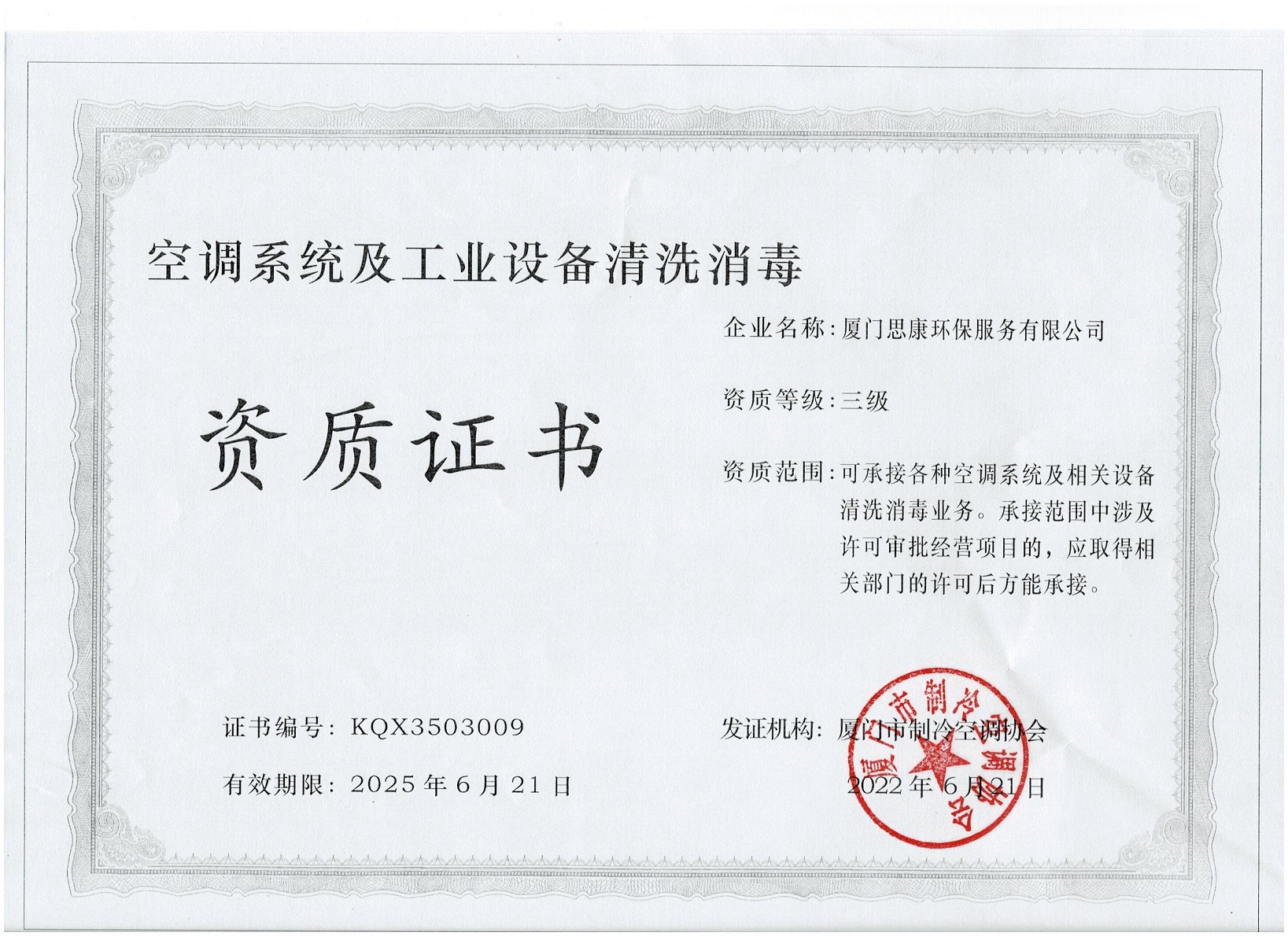 空調(diào)系統(tǒng)及工業(yè)設(shè)備清洗消毒三級(jí)資質(zhì)